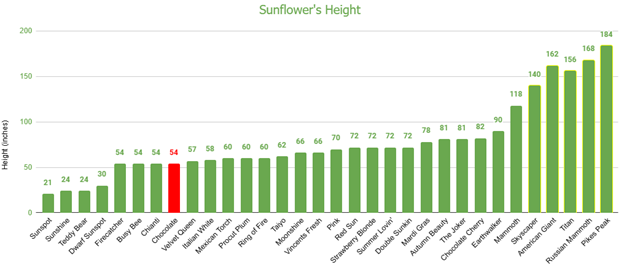 Chocolate Sunflower. This is a top choice for garden design or cut flower sales thanks to a long vase life and lower pollen count than other heirloom sunflowers. These sunflowers benefit from regular feeding every 2-3 weeks with a balanced fertilizer, and they may require staking due to their tall, branching habit.